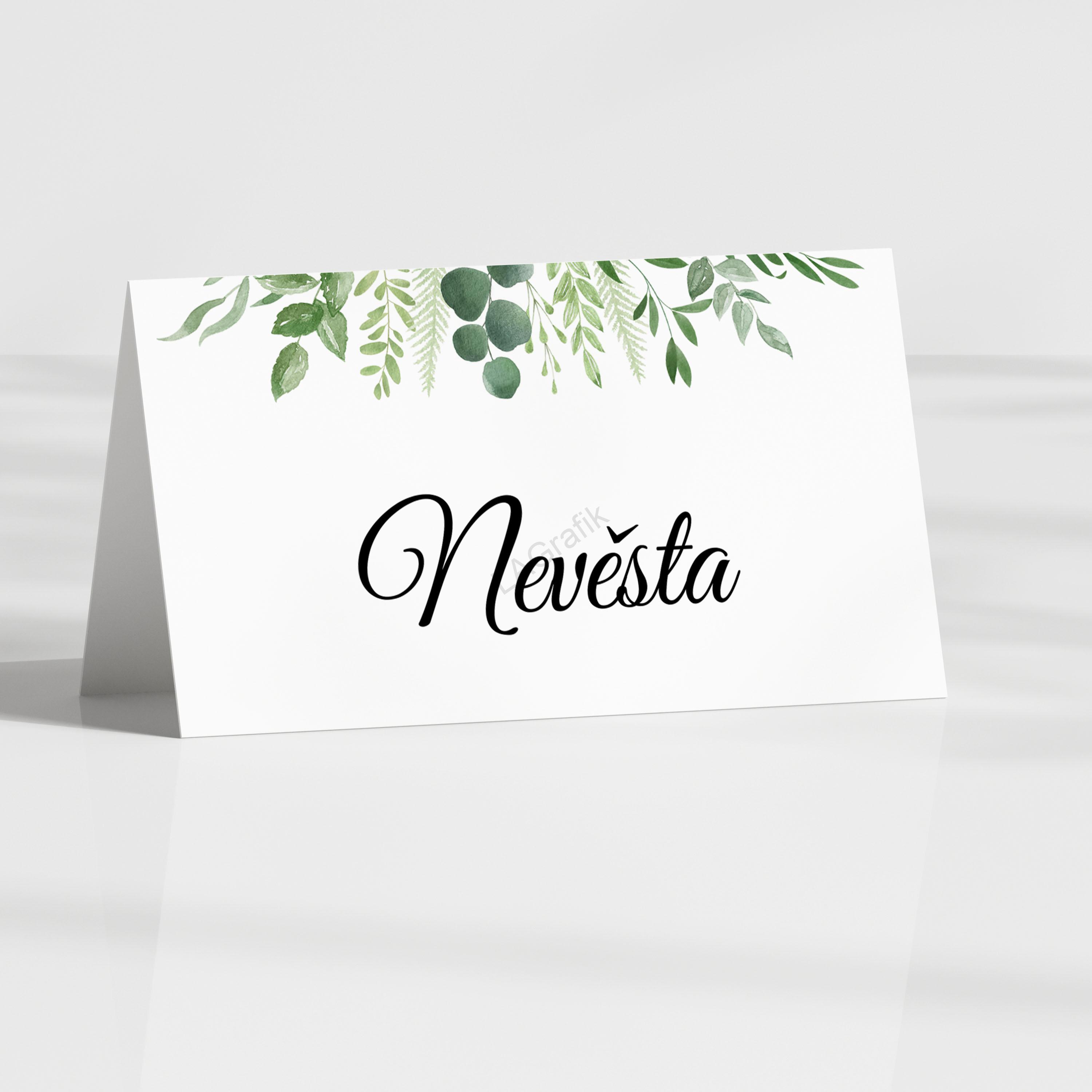 Jmenovka v motivu EUCALYPTUS No.3 přeložena do stříšky (k postavení na stůl)
