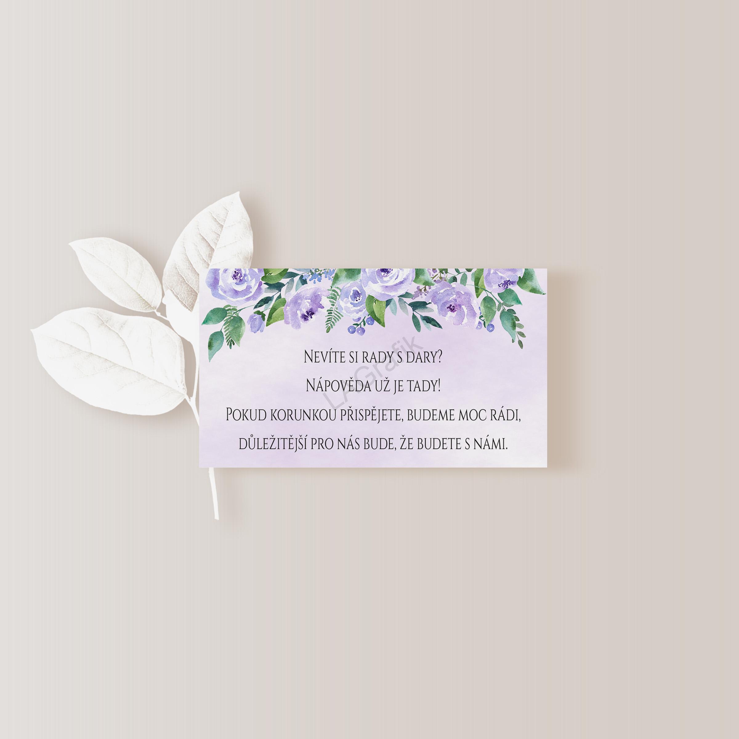 - Kartička o darech 10 x 5cm FIALOVÁ HARMONIE