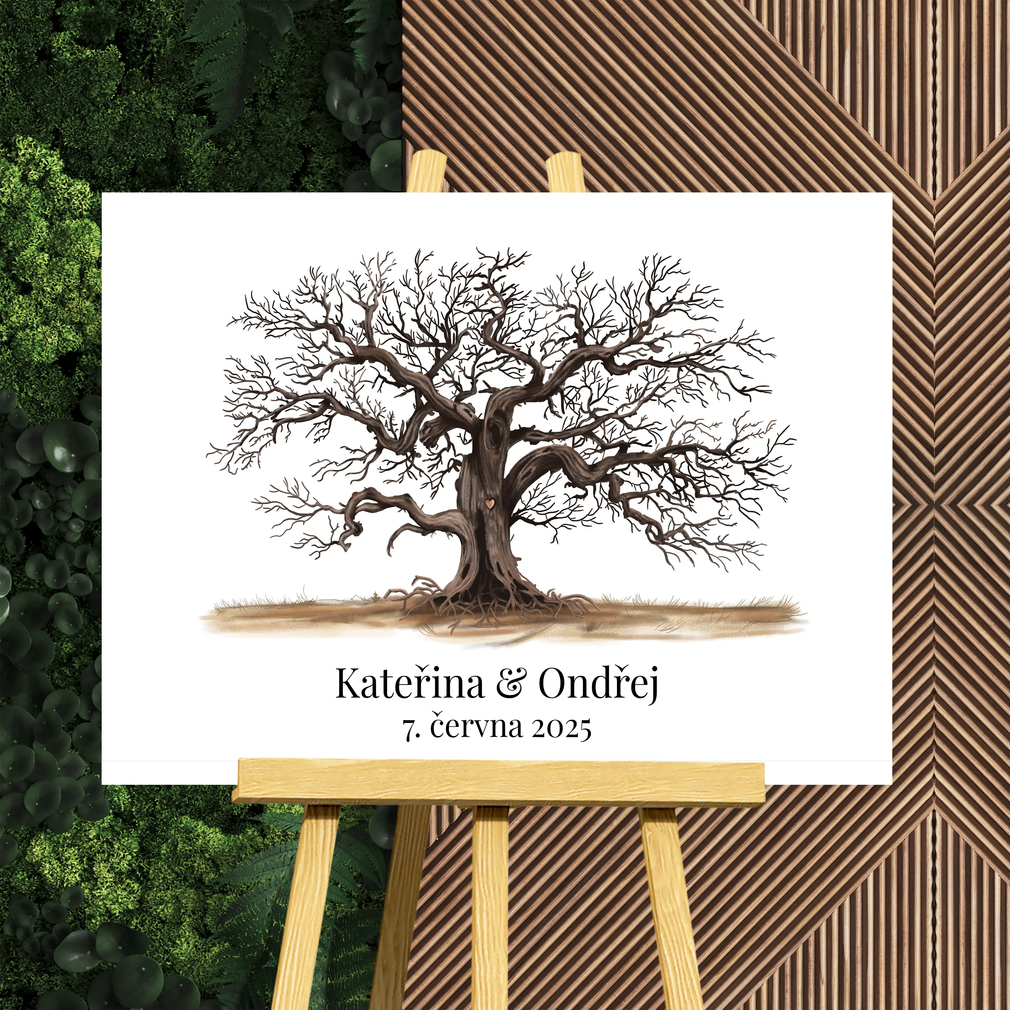 Svatební strom na otisky prstů je originální a stylová památka na váš velký den. Tento elegantní strom umožňuje svatebním hostům zanechat svůj otisk prstu jako symbol jejich účasti a přání štěstí novomanželům. Každý otisk vytváří jedinečné „listí“ stromu, čímž vzniká krásná a osobní dekorace, kterou si můžete uchovat jako vzpomínku na vaši svatbu.