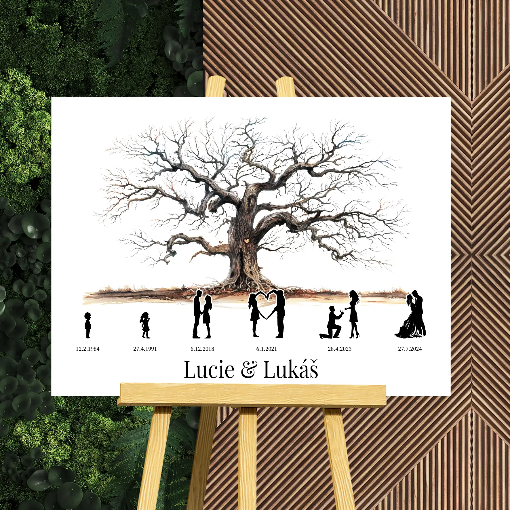 - Svatební strom na otisky prstů s příběhem lásky
